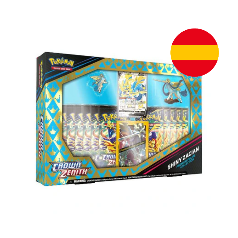 Celebra la grandeza de Galar con la Colección Zacian de Crown Zenith. Este set incluye todo lo que un coleccionista puede desear: una carta promocional foil exclusiva de Zacian VSTAR, una figura de Zacian cuidadosamente detallada, un pin metálico temático y un monedero conmemorativo.