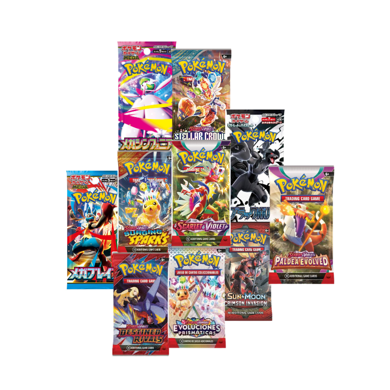 Los sobres pueden incluir cartas en español, inglés o japonés, ofreciendo una experiencia única para todo tipo de coleccionistas y jugadores.
